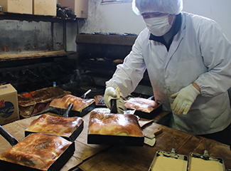 巻きすのこを使って一本一本手作業で仕上げています。 |
